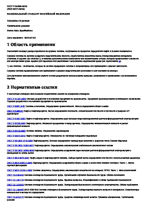 ГОСТ Р 54299-2010: Топлива судовые. Технические условия
