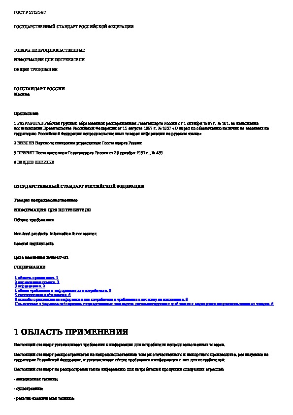 ГОСТ Р 51121-97: Товары непродовольственные. Информация для потребителя. Общие требования
