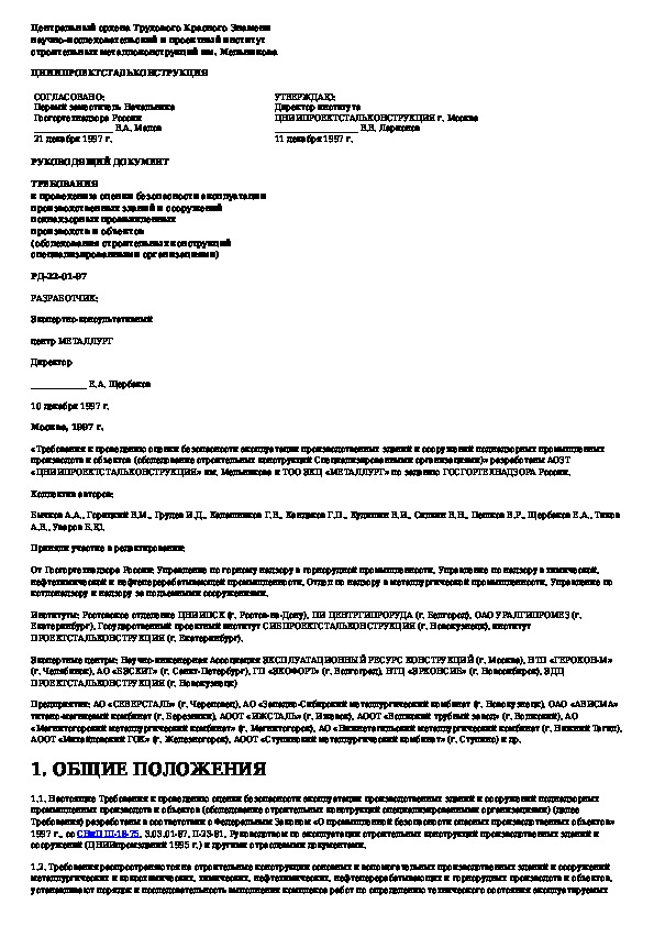 Наша цель состоит в том, чтобы предоставить вам быстрый доступ к содержанию документа Требования к проведению оценки безопасности эксплуатации производственных зданий и сооружений поднадзорных промышленных произв.