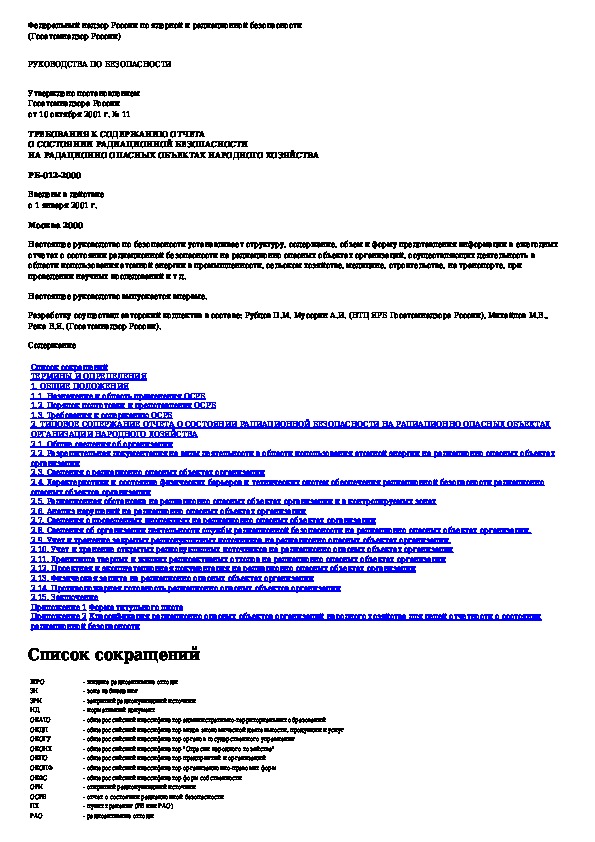 Наша цель состоит в том, чтобы предоставить вам быстрый доступ к содержанию документа Требования к содержанию отчета о состоянии радиационной безопасности на радиационно опасных объектах народного хозяйства.