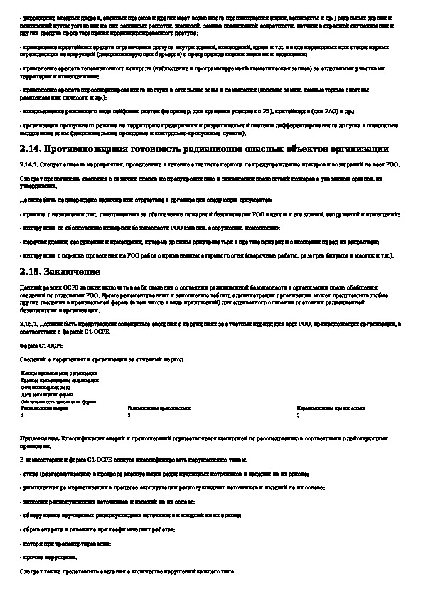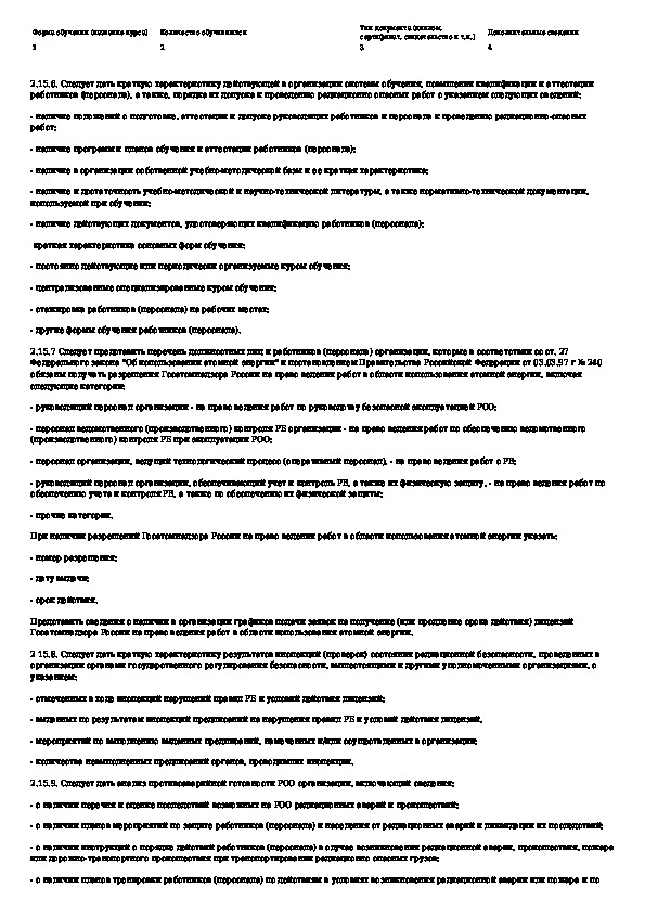 Требования к содержанию отчета о состоянии радиационной безопасности на радиационно опасных объектах народного хозяйства