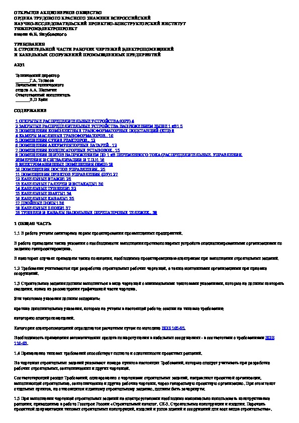 Наша цель состоит в том, чтобы предоставить вам быстрый доступ к содержанию документа Требования к строительной части рабочих чертежей электропомещений и кабельных сооружений промышленных предприятий.