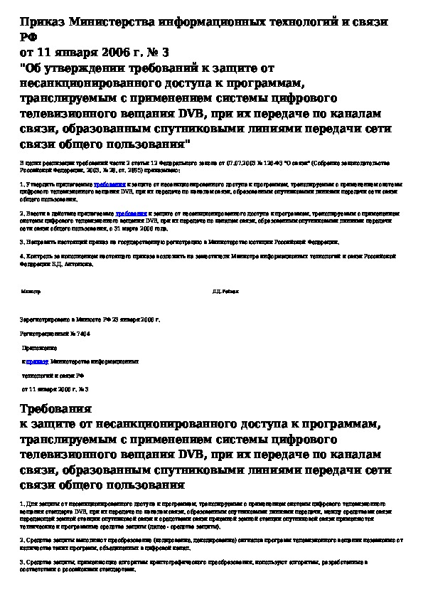 Требования к защите от несанкционированного доступа к программам, транслируемым с применением системы цифрового телевизионного