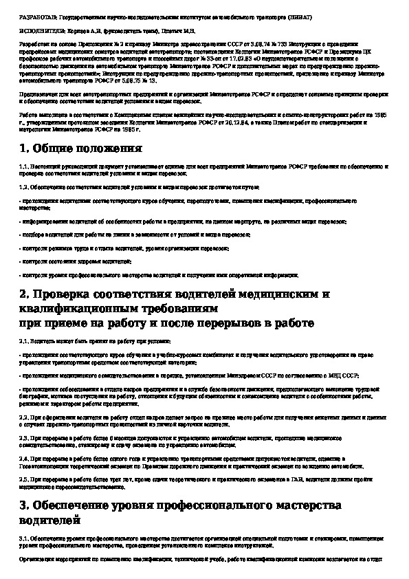 Наша цель состоит в том, чтобы предоставить вам быстрый доступ к содержанию документа Требования по проверке обеспечения соответствия водителей условиям и видам перевозок.