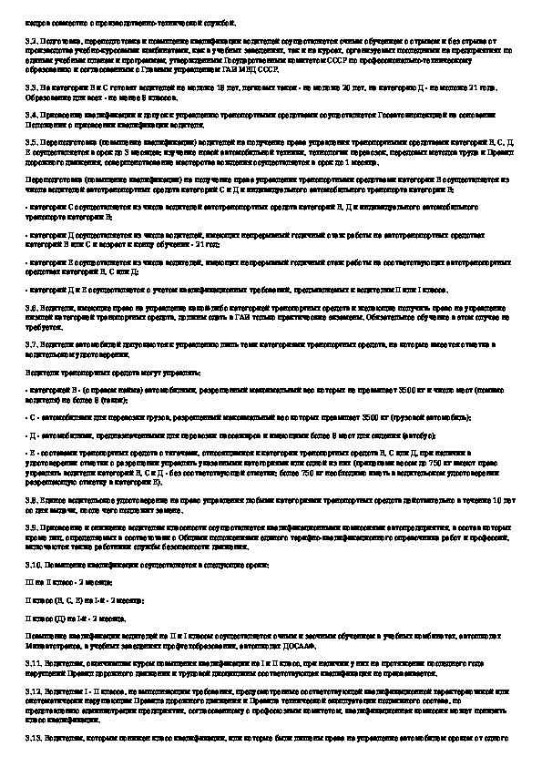 РД 200-РСФСР-12-0071-86-10: Требования по проверке обеспечения соответствия водителей условиям и видам перевозок