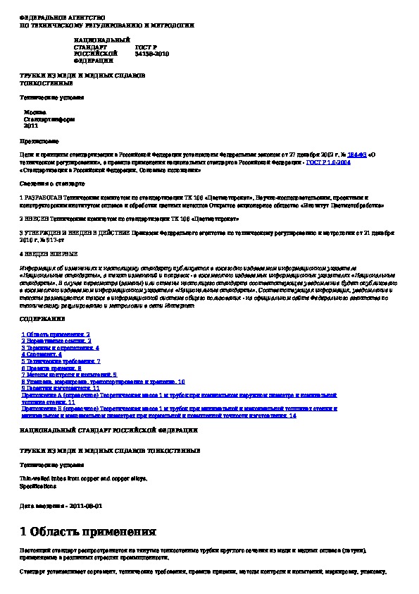 Наша цель состоит в том, чтобы предоставить вам быстрый доступ к содержанию документа Трубки из меди и медных сплавов тонкостенные. Технические условия.