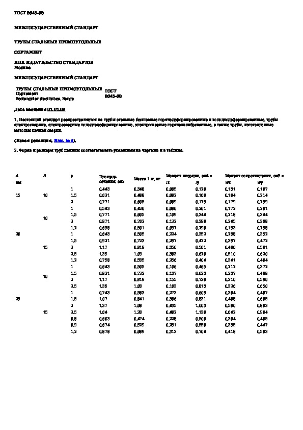 ГОСТ 8645-68: Трубы стальные прямоугольные. Сортамент
