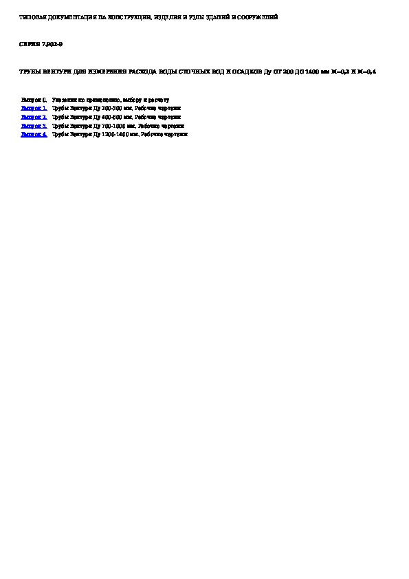 • Загрузка на компьютер - Вы можете также скачать Трубы Вентури для измерения расхода воды сточных вод и осадков, Ду от 200 до 1400 мм, m = 0,2 и m = 0,4 на свой компьютер и сохранить его в файлах.