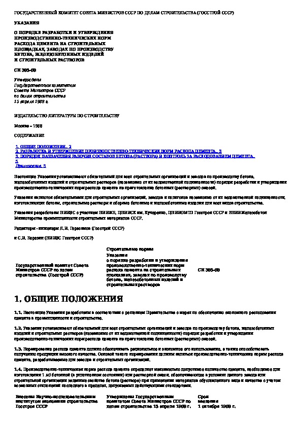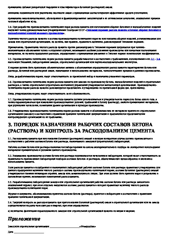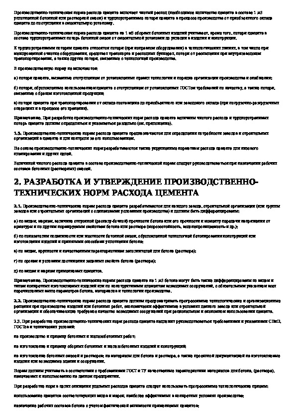 Указания о порядке разработки и утверждения производственно-технических норм расхода цемента на строительных площадках, заводах