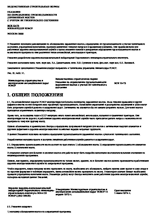 ВСН 12-73: Указания по определению грузоподъемности деревянных мостов с учетом их технического состояния