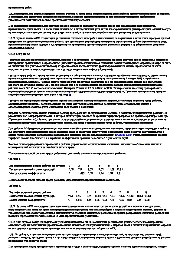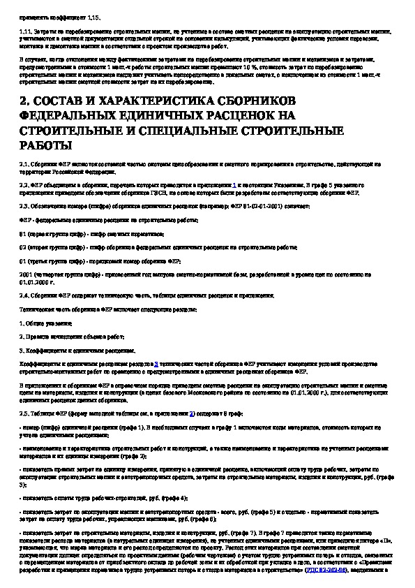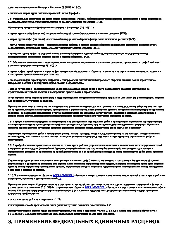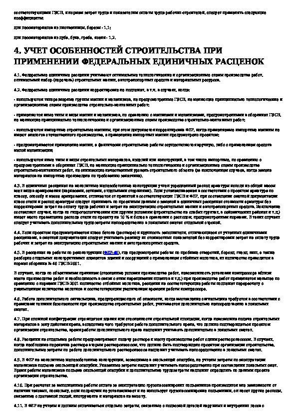 Указания по применению федеральных единичных расценок на строительные и специальные строительные работы