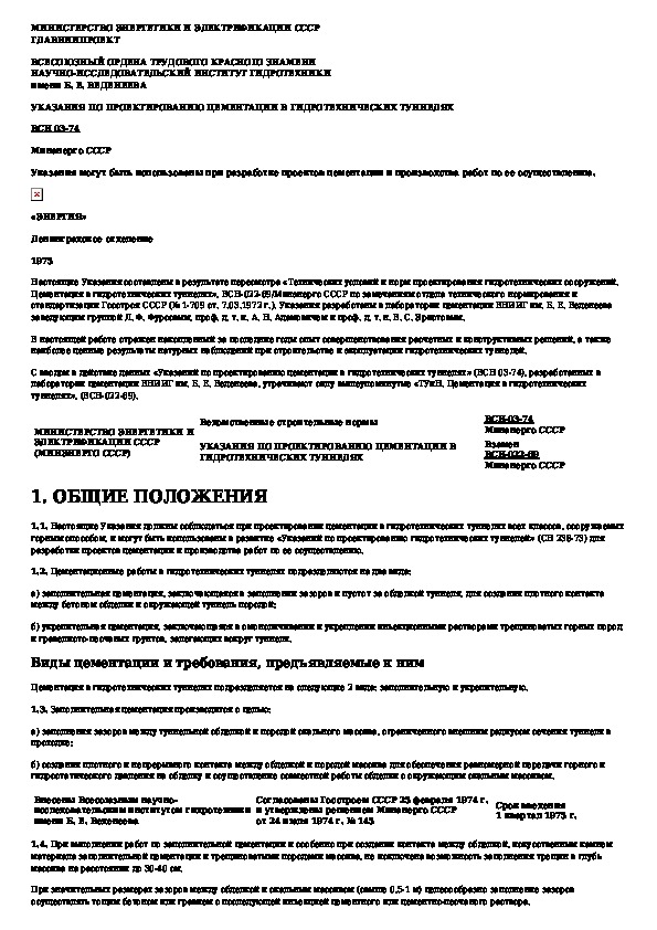 Наша цель состоит в том, чтобы предоставить вам быстрый доступ к содержанию документа Указания по проектированию цементации в гидротехнических туннелях.