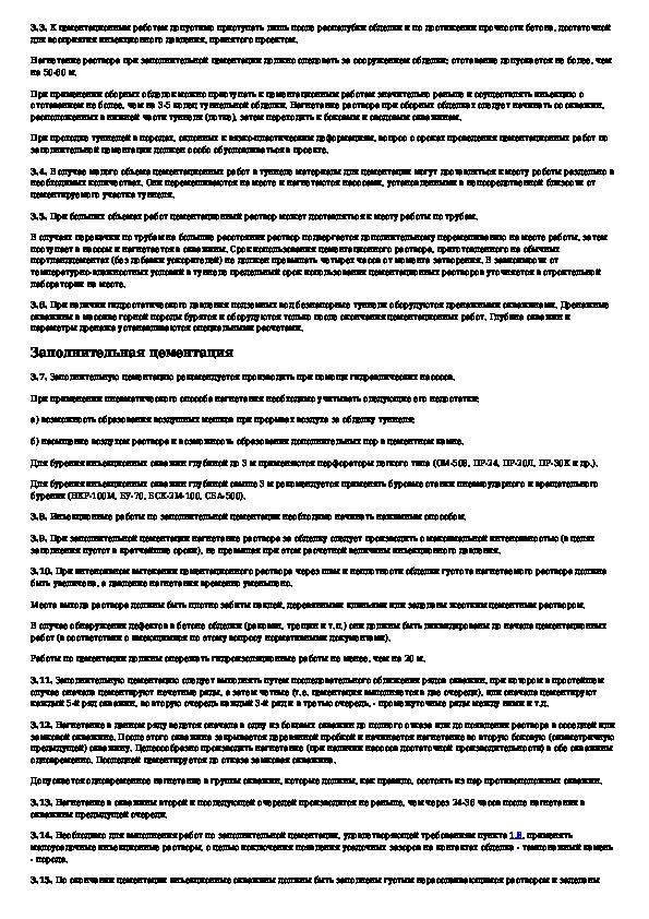 Указания по проектированию цементации в гидротехнических туннелях