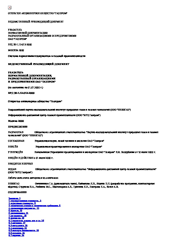Наша цель состоит в том, чтобы предоставить вам быстрый доступ к содержанию документа Указатель нормативной документации разработанный организациями и предприятиями ОАО "Газпром".