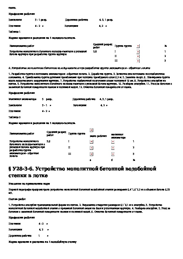 Укрупненные нормы времени и расценки на устройство искусственных сооружений отвода поверхностных вод от земляного полотна. Выпус