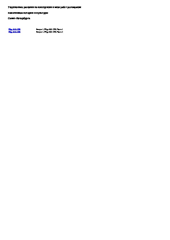 Укрупненные расценки на конструкции и виды работ реставрации памятников истории и культуры Санкт-Петербурга