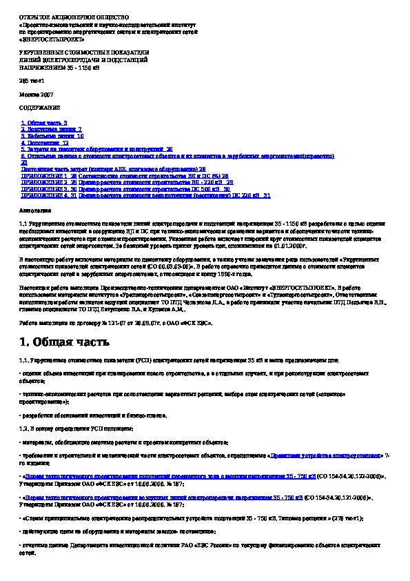 Наша цель состоит в том, чтобы предоставить вам быстрый доступ к содержанию документа Укрупненные стоимостные показатели линий электропередачи и подстанций напряжением 35 - 1150 кВ.