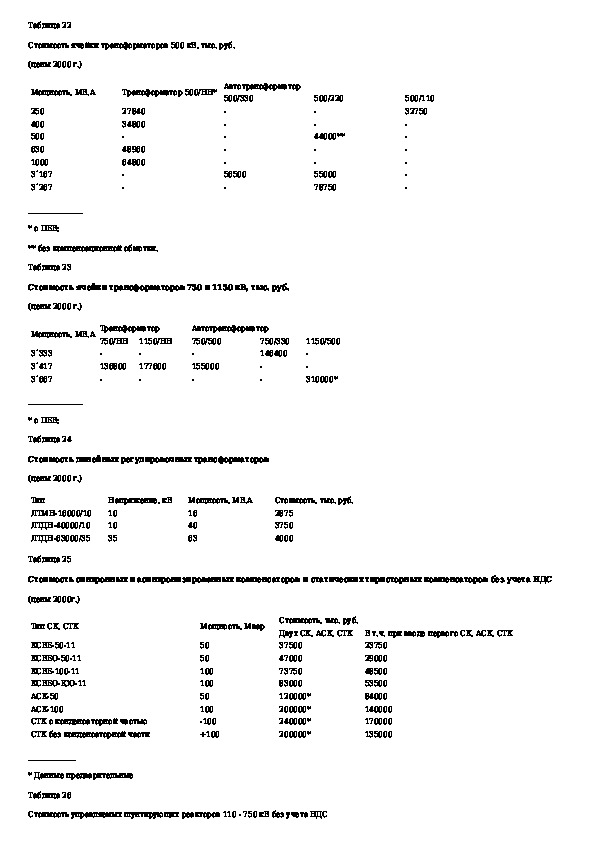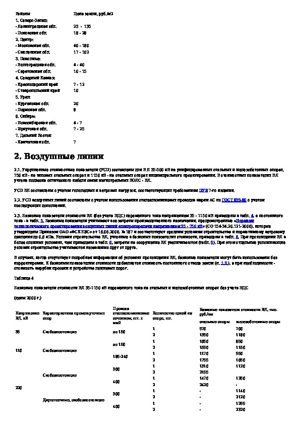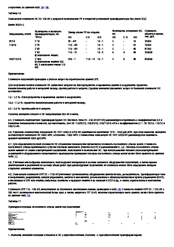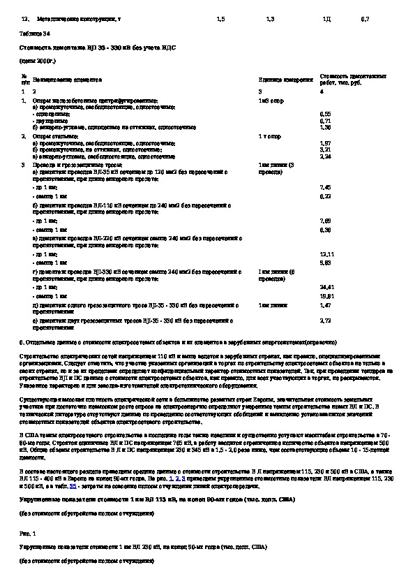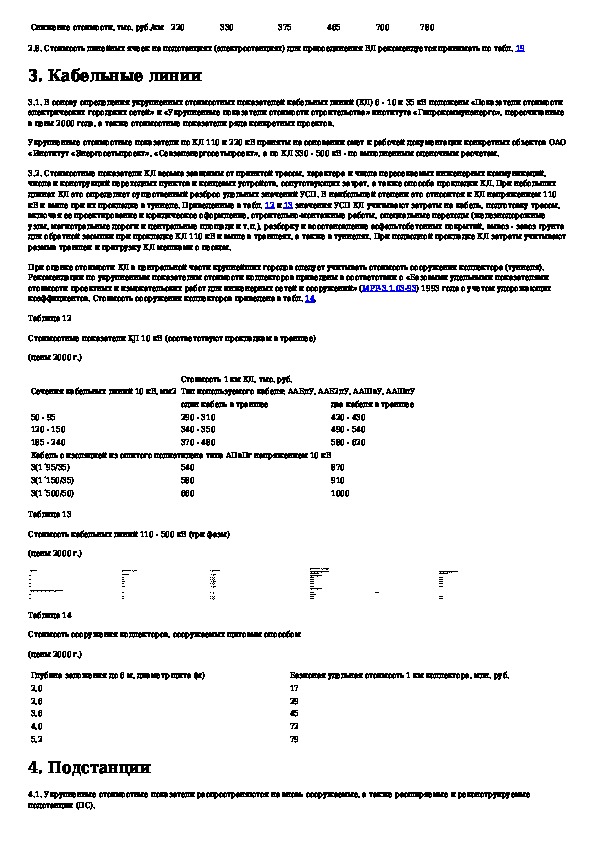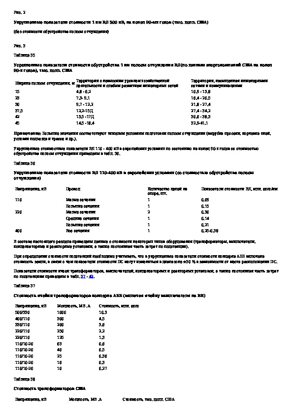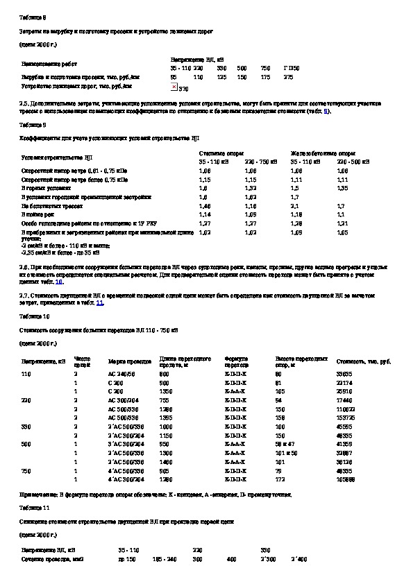 Укрупненные стоимостные показатели линий электропередачи и подстанций напряжением 35 - 1150 кВ