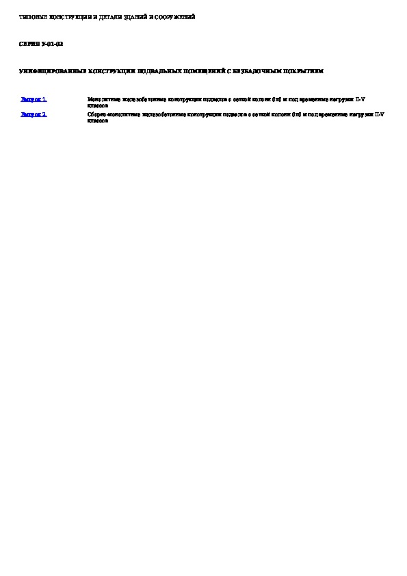 Наша цель состоит в том, чтобы предоставить вам быстрый доступ к содержанию документа Унифицированные конструкции подвальных помещений с безбалочным покрытием.