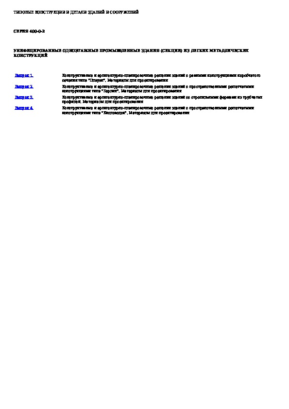 Наша цель состоит в том, чтобы предоставить вам быстрый доступ к содержанию документа Унифицированные одноэтажные промышленные здания (секции) из легких металлических конструкций.