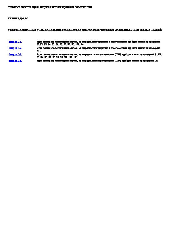 Наша цель состоит в том, чтобы предоставить вам быстрый доступ к содержанию документа Унифицированные узлы санитарно-технических систем, монтируемых "россыпью" для жилых зданий.