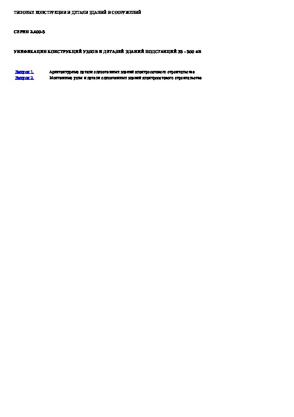 Наша цель состоит в том, чтобы предоставить вам быстрый доступ к содержанию документа Унификация конструкций узлов и деталей зданий подстанций 35 - 500 кВ.