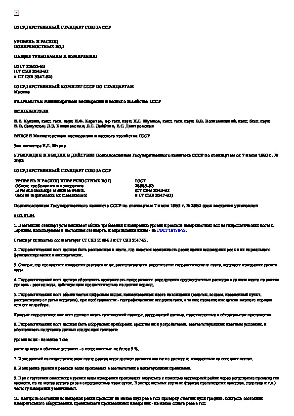 Наша цель состоит в том, чтобы предоставить вам быстрый доступ к содержанию документа Уровень и расход поверхностных вод. Общие требования к измерению.