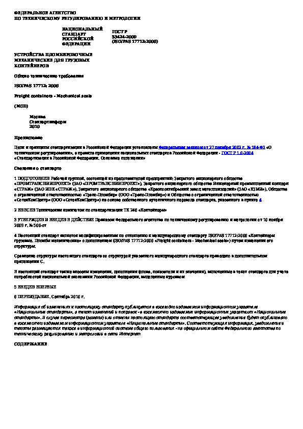 Наша цель состоит в том, чтобы предоставить вам быстрый доступ к содержанию документа Устройства пломбировочные механические для грузовых контейнеров. Общие технические требования.