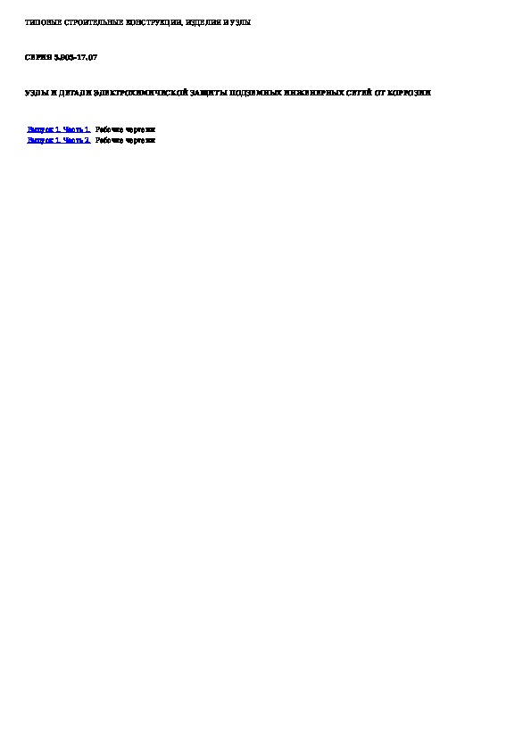 Наша цель состоит в том, чтобы предоставить вам быстрый доступ к содержанию документа Узлы и детали электрохимической защиты подземных инженерных сетей от коррозии.