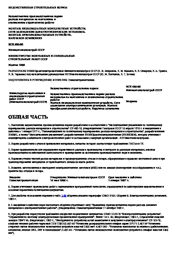 ВСН 480-86: Ведомственные производственные нормы расхода материалов на монтажные и специальные строительные работы. Монтаж низковольтных ко