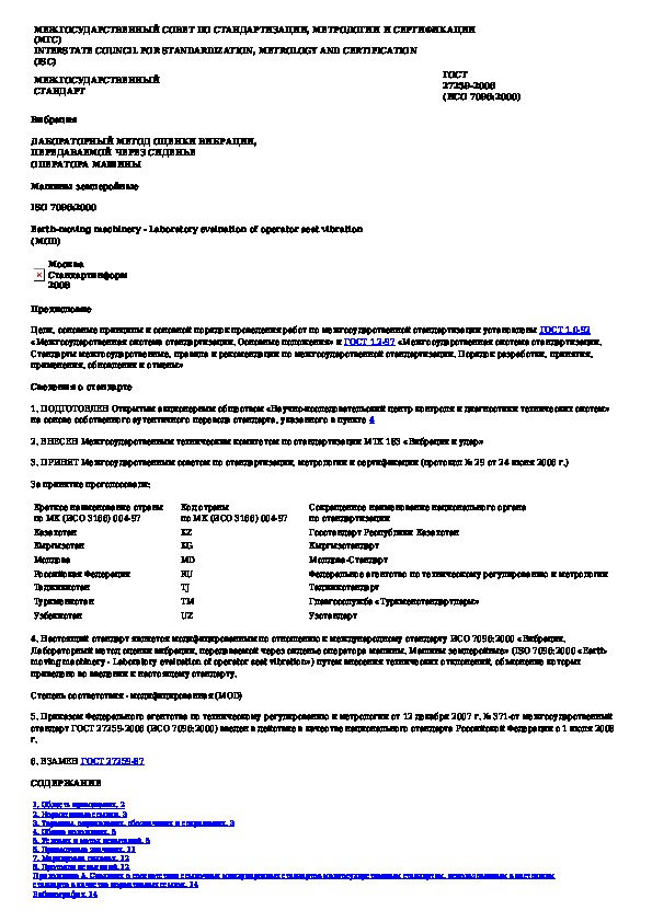 • Просмотр в полноэкранном режиме - легко просмотреть документ Вибрация. Лабораторный метод оценки вибрации, передаваемой через сиденье оператора машины. Машины землеройные (без загрузки его на свой компьютер).
