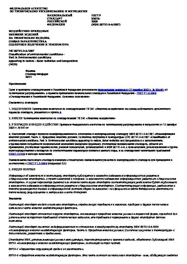ГОСТ Р 53615-2009: Воздействие природных внешних условий на технические изделия. Общая характеристика. Солнечное излучение и температура