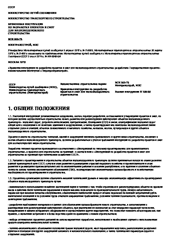 ВСН 202-75: Временная инструкция по разработке проектов и смет для железнодорожного строительства