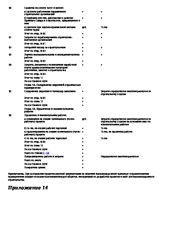 Временная инструкция по разработке проектов и смет для железнодорожного строительства