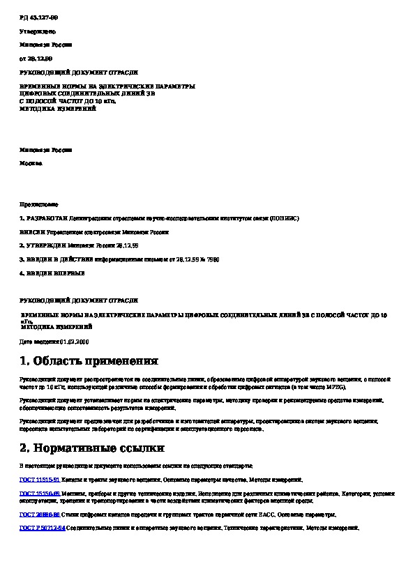 Наша цель состоит в том, чтобы предоставить вам быстрый доступ к содержанию документа Временные нормы на электрические параметры цифровых соединительных линий 3В с полосой частот до 10 кГц. Методика измерений.