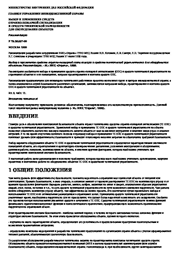 Наша цель состоит в том, чтобы предоставить вам быстрый доступ к содержанию документа Выбор и применение средств охранно-пожарной сигнализации и средств технической укрепленности для оборудования объектов. Рекомен.